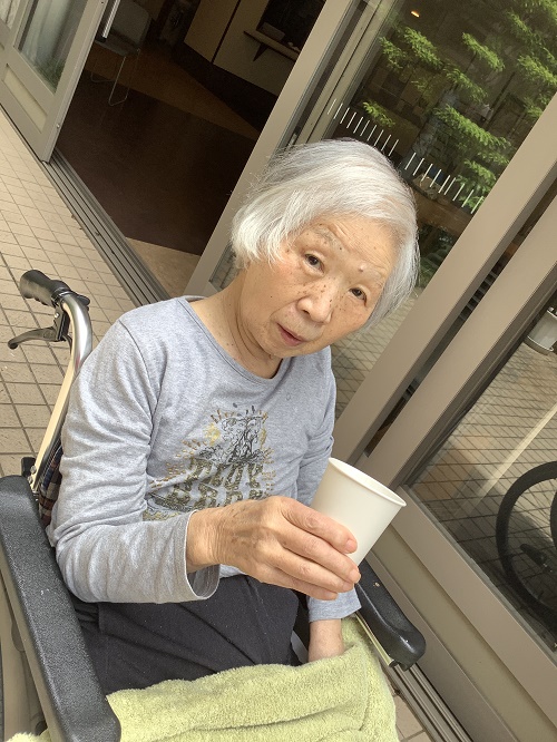 ウィンナーや焼きそばを焼いて中庭で昼食。