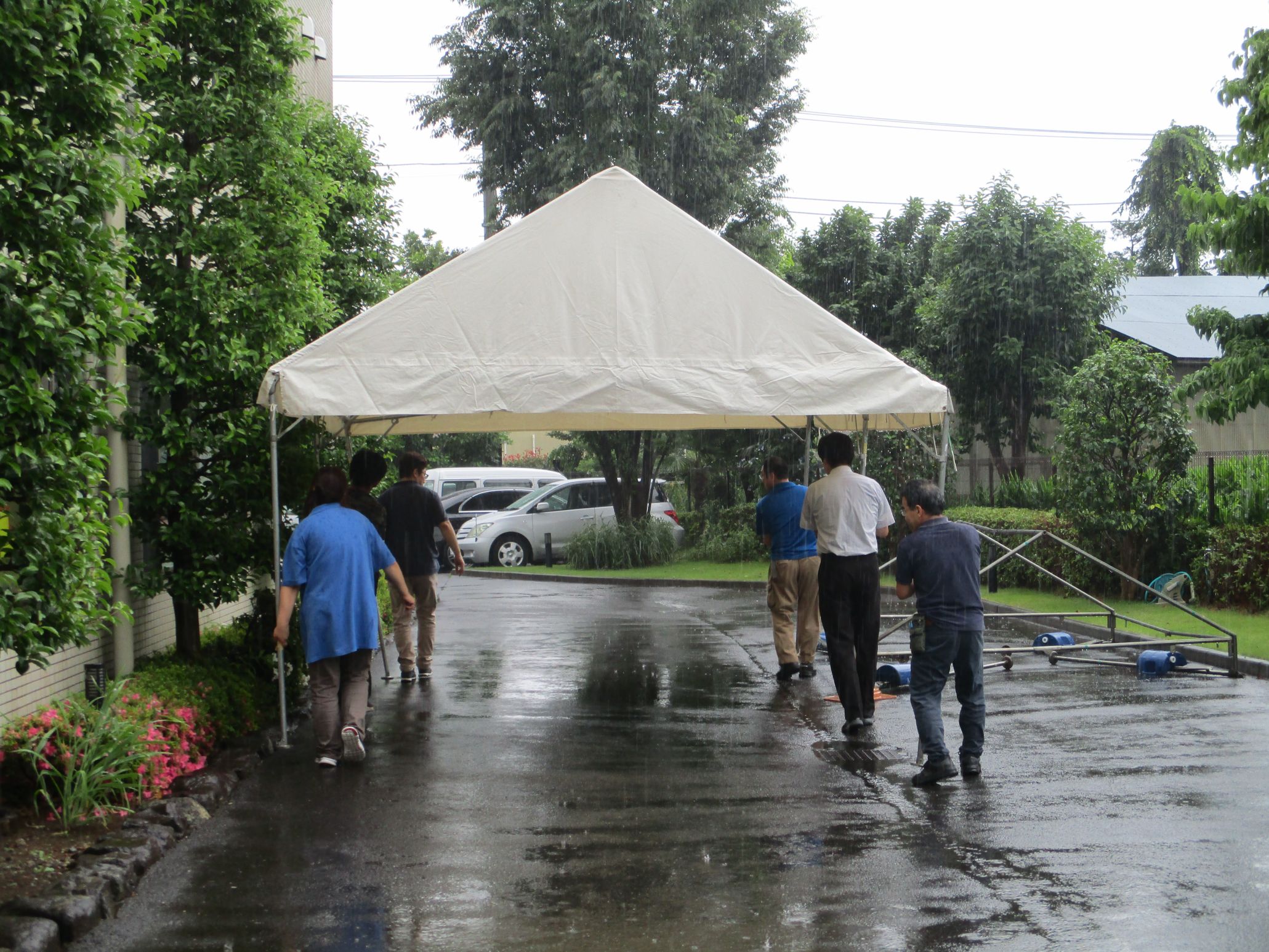 それでも前日からテントを用意したり、地域交流スペースの飾りつける等会場設営を行い、当日が雨天の場合は屋外の露店の位置を見直すつもりでできるところまで準備を進めました。