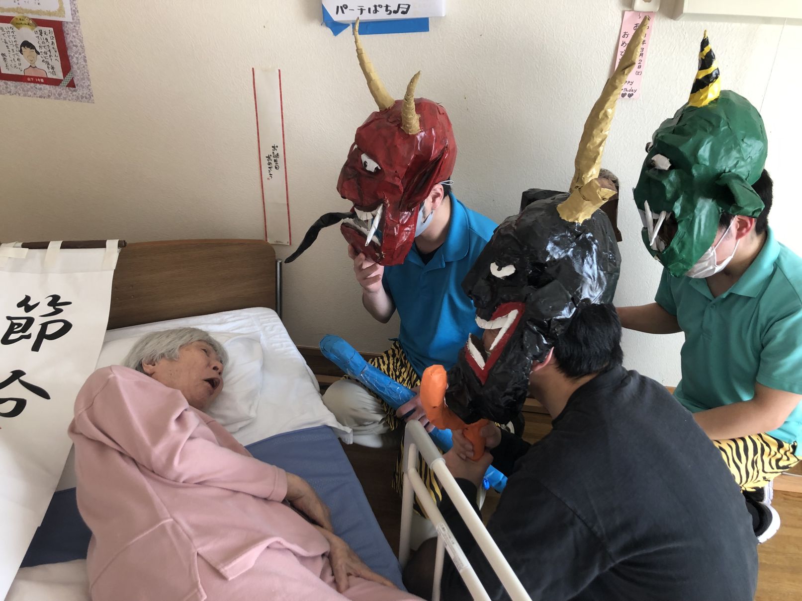 今日は節分ということで、恒例の豆まきを各ユニットで行いました。
