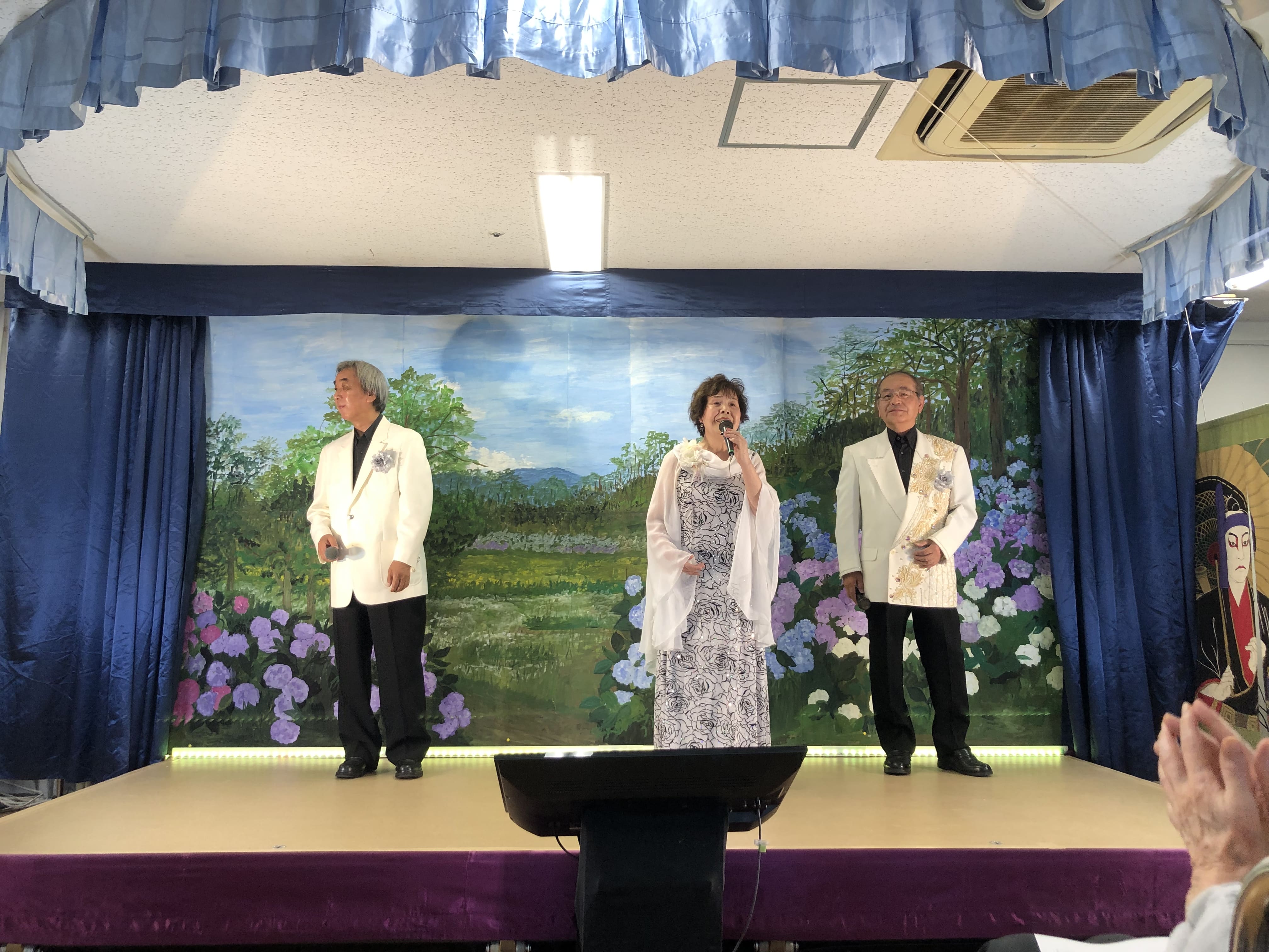 途中で、ご利用者様と職員のコーナーもあり、代表者がステージに上がって歌を披露する場面もありました。