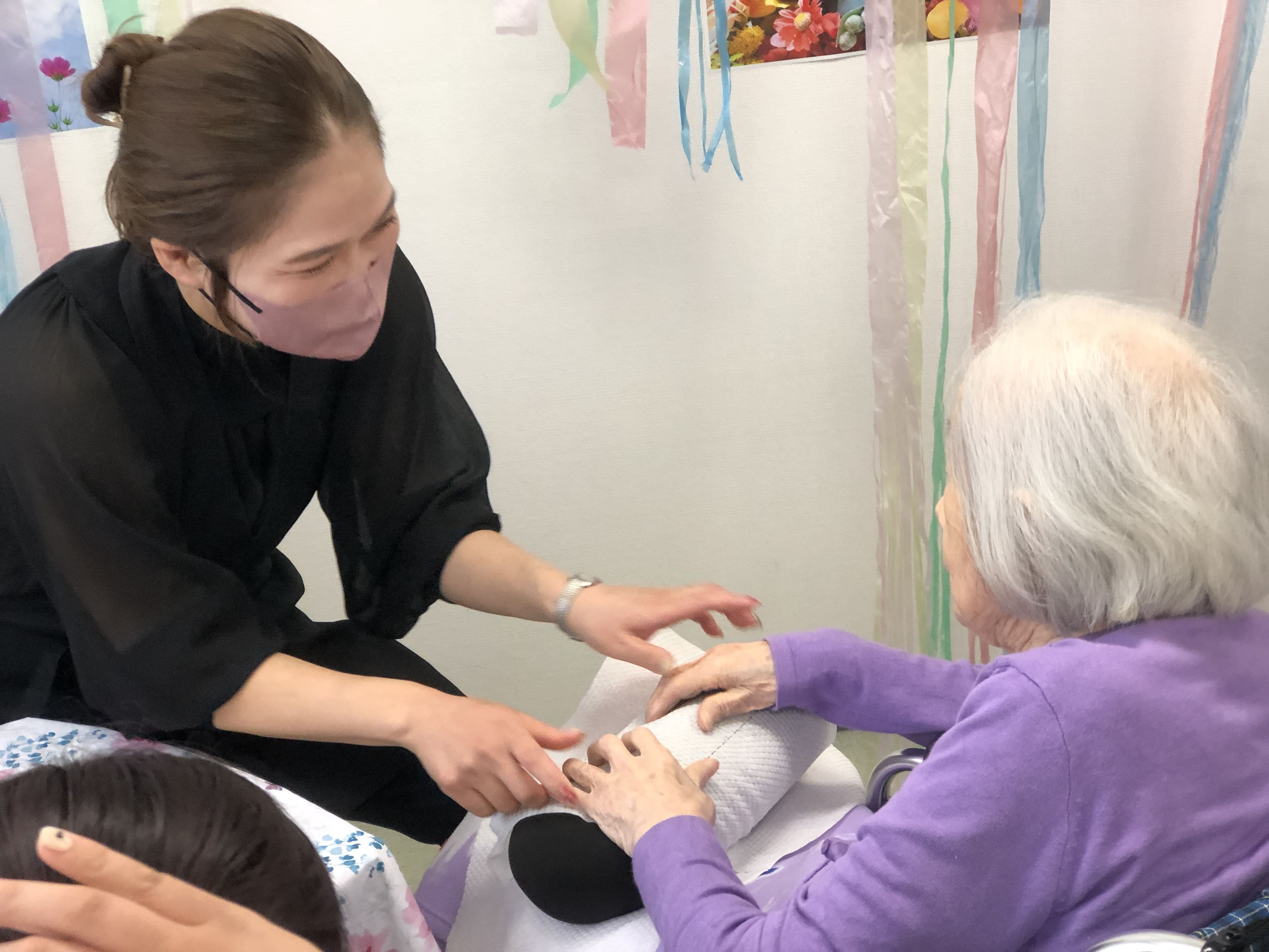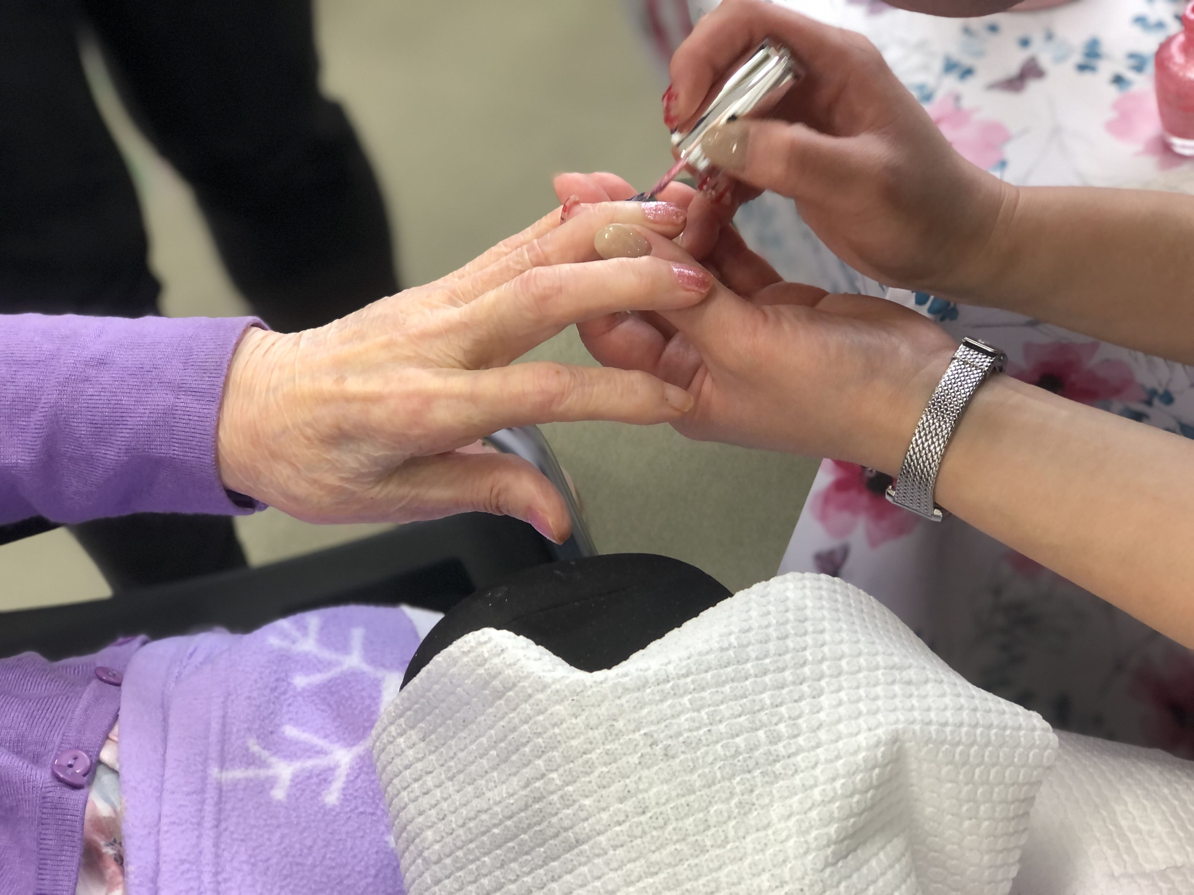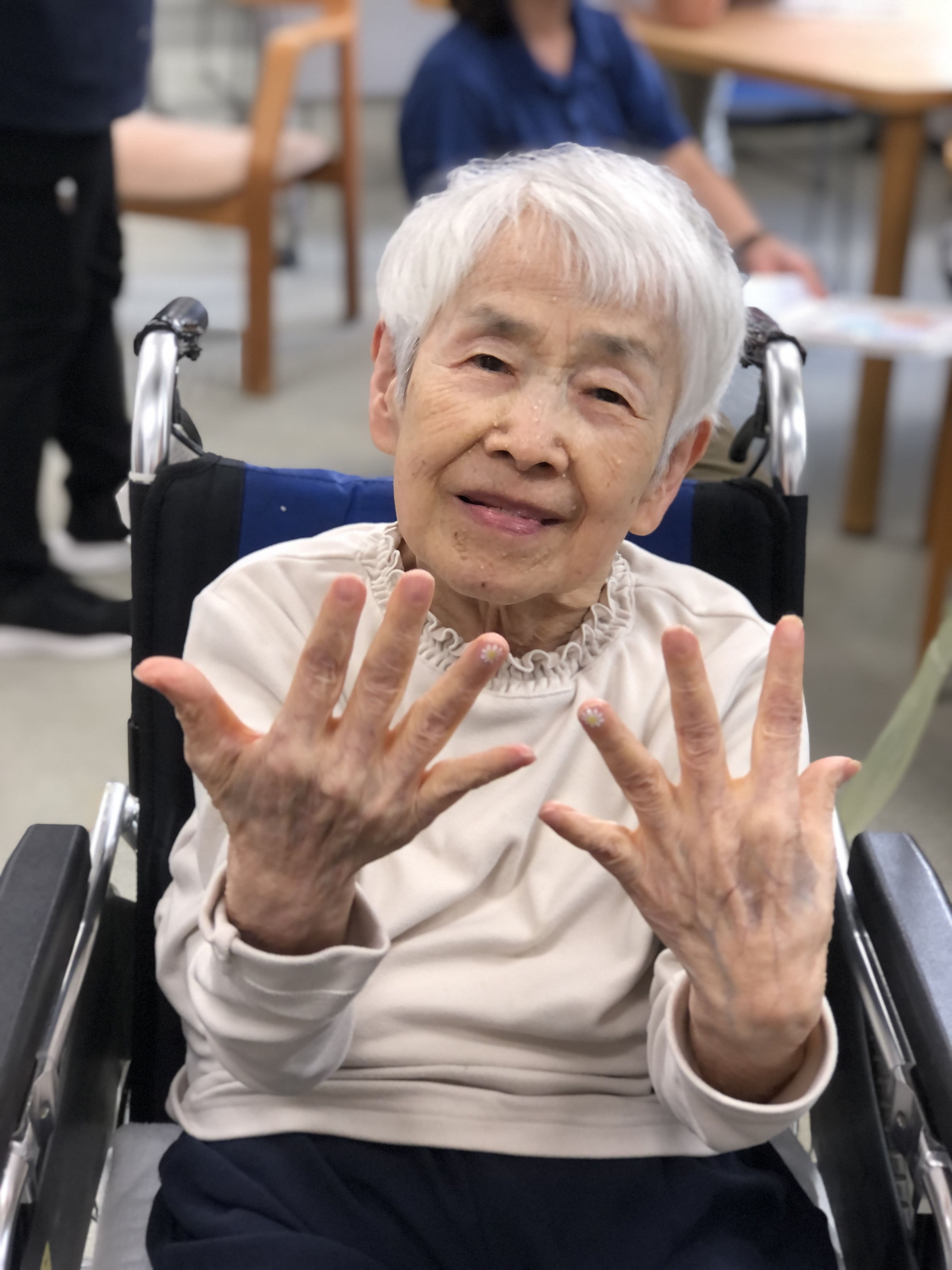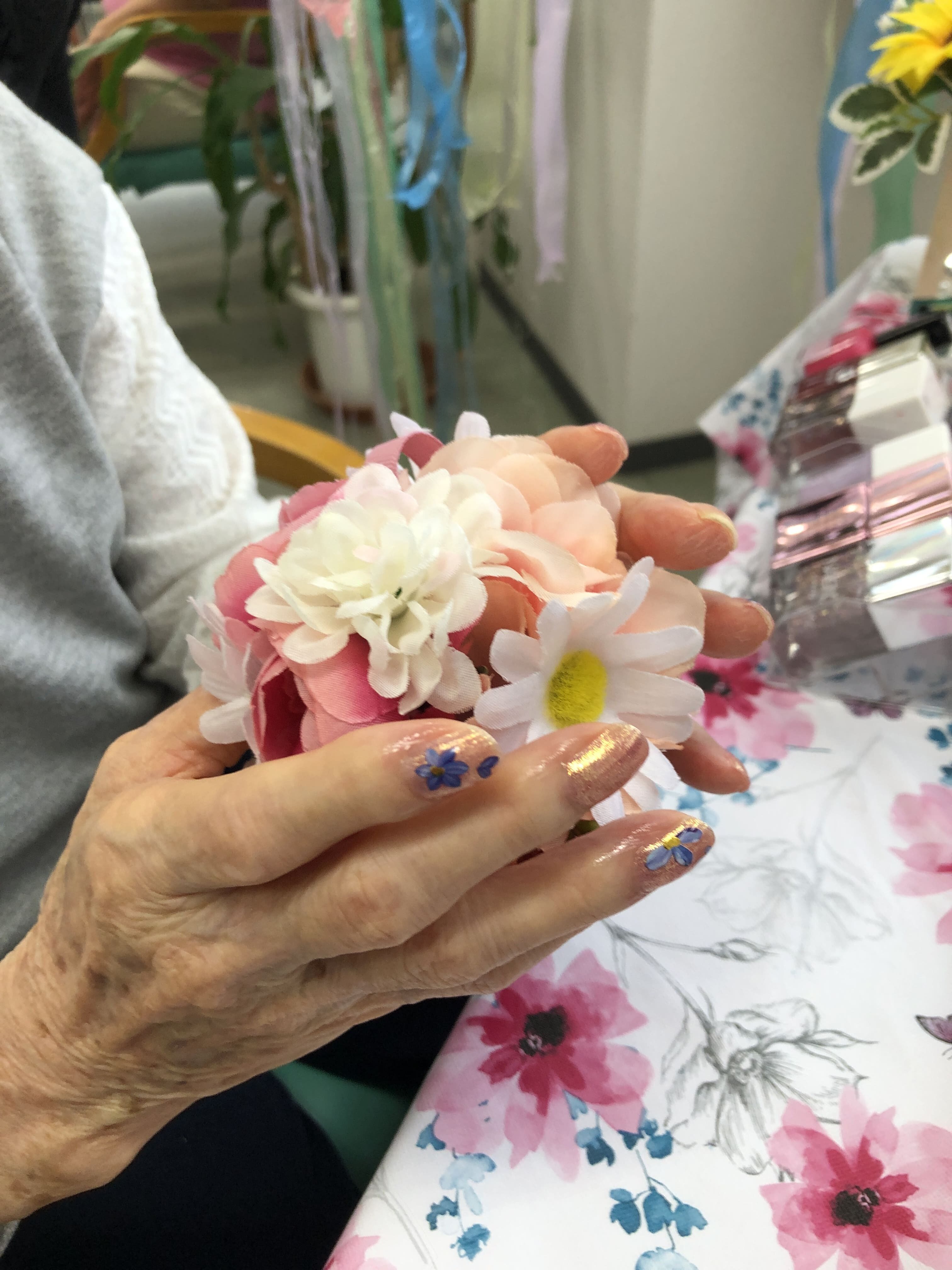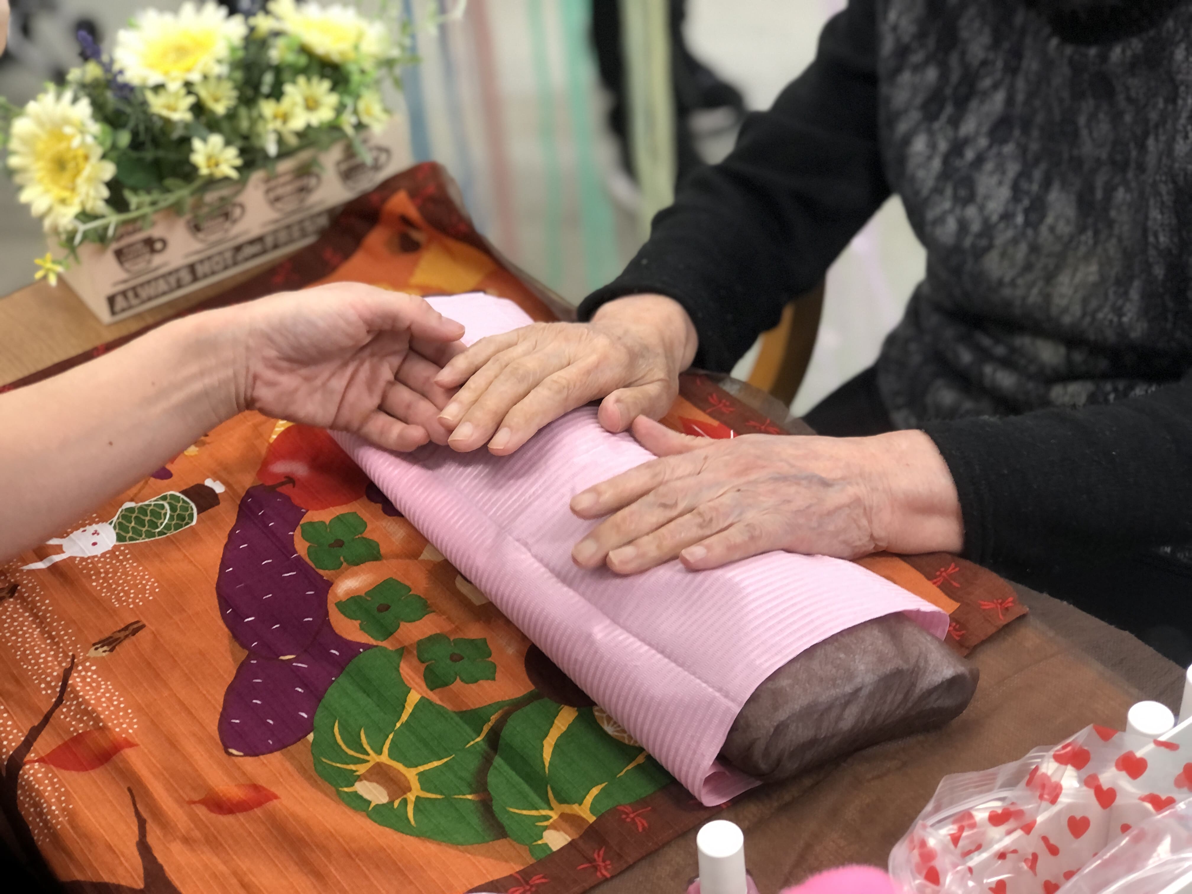 初めてのネイルサロン体験という方や以前からご自身で爪の手入れされている方等様々でしたが、ネイリストさんや職員と楽しく会話しながらのイベントになりました。塗った後のお互いの爪を見せ合うシーンも印象的でした。