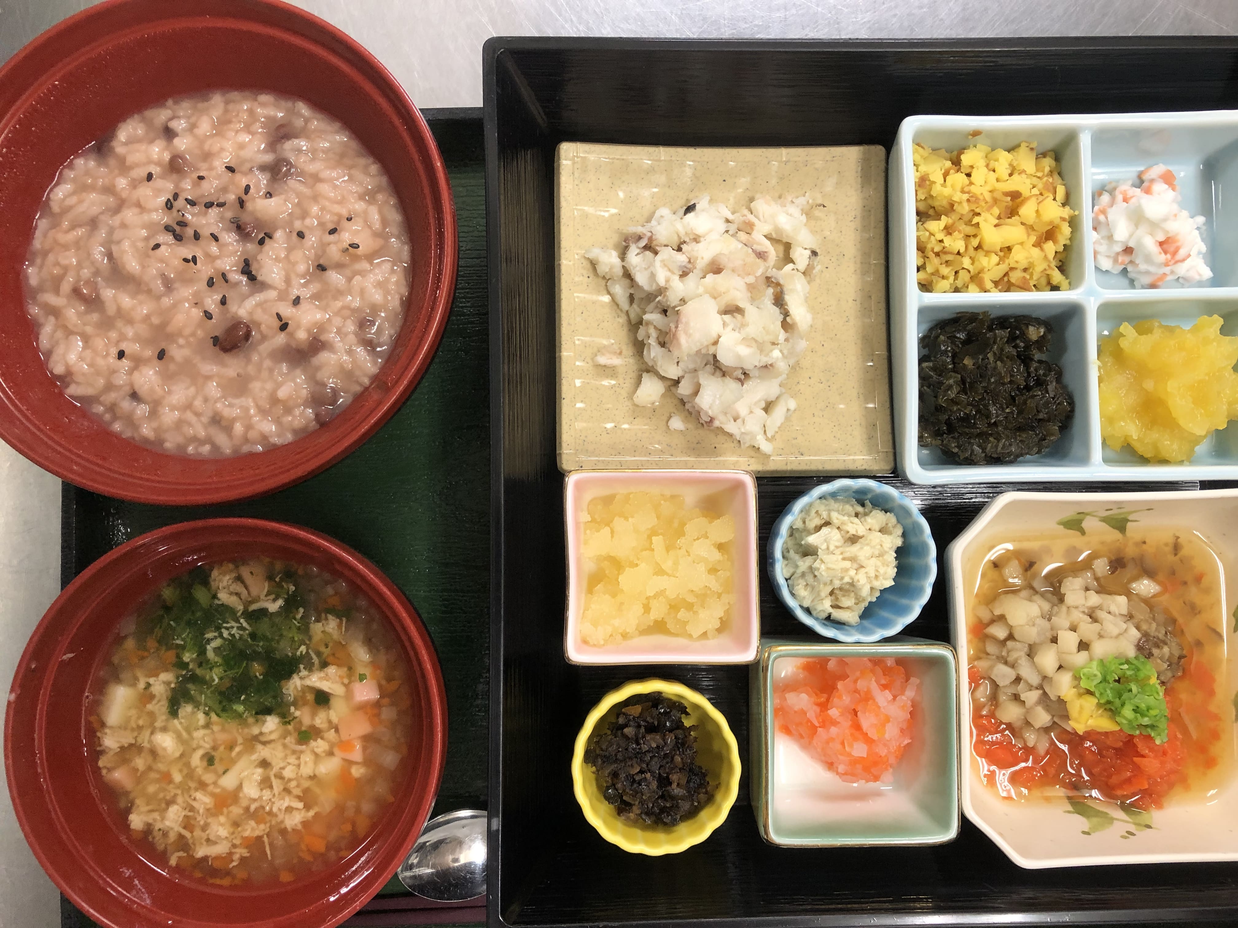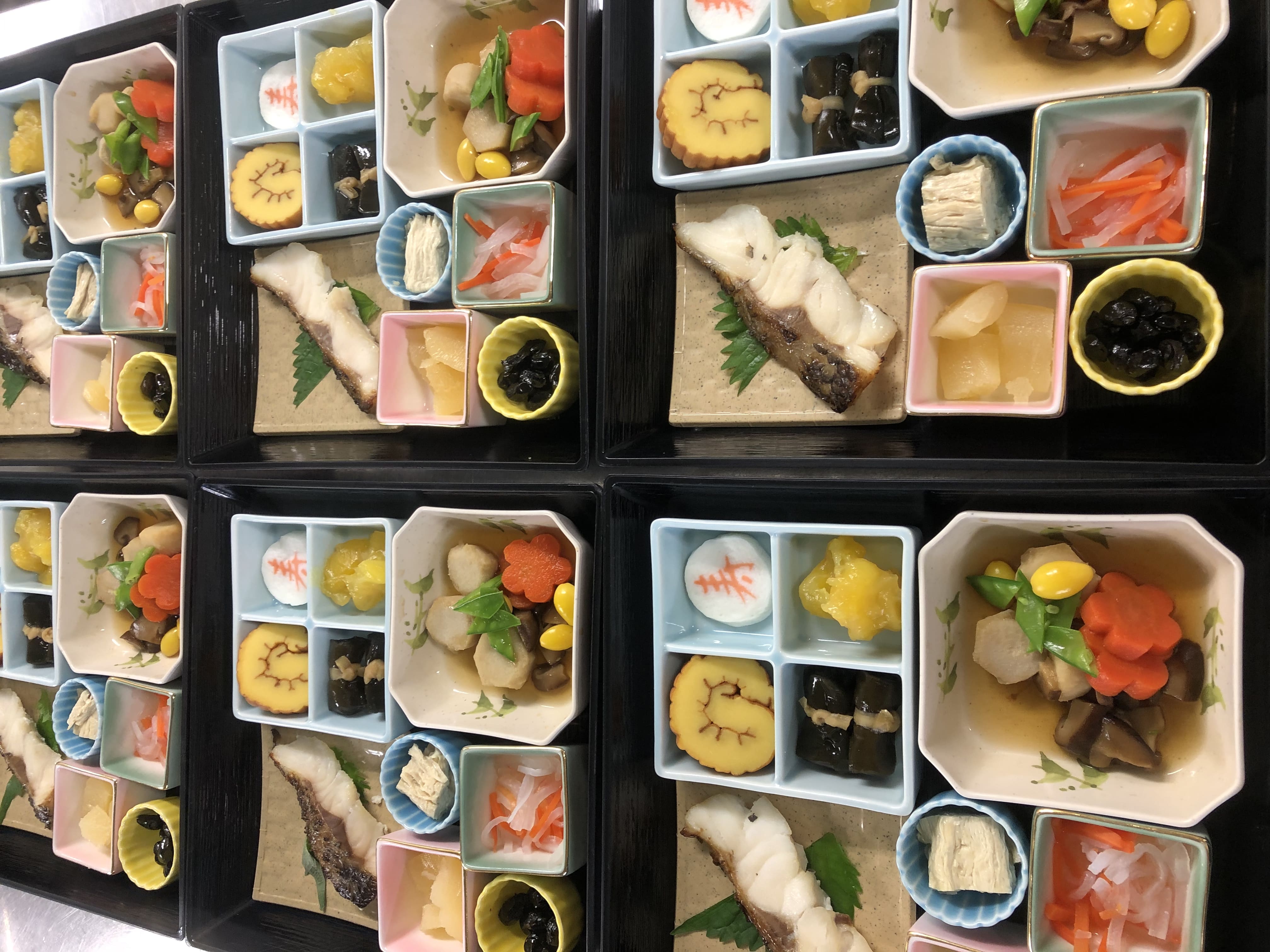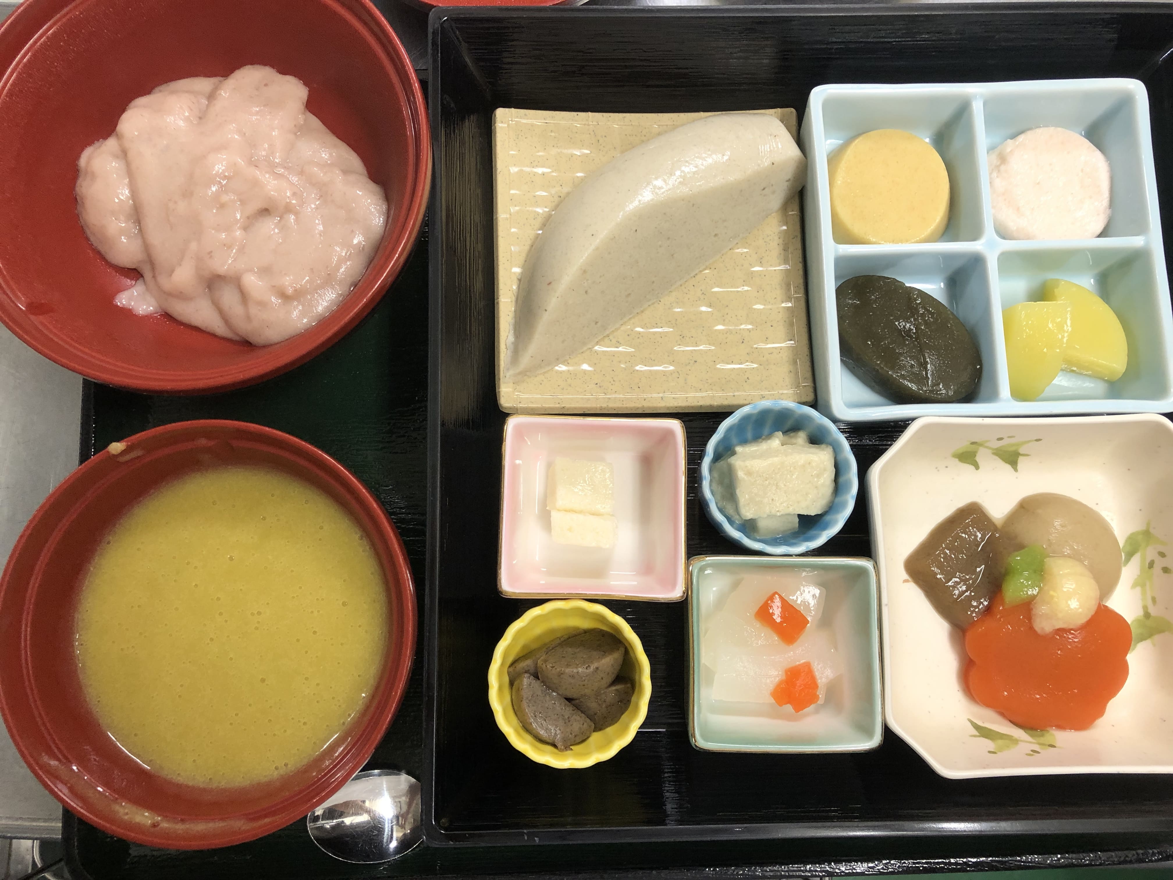 お節膳もキザミ食、ソフト食、ミキサー食とそれぞれなるべく具材や色を分けて味も見た目も楽しんでいただけるようにしています。