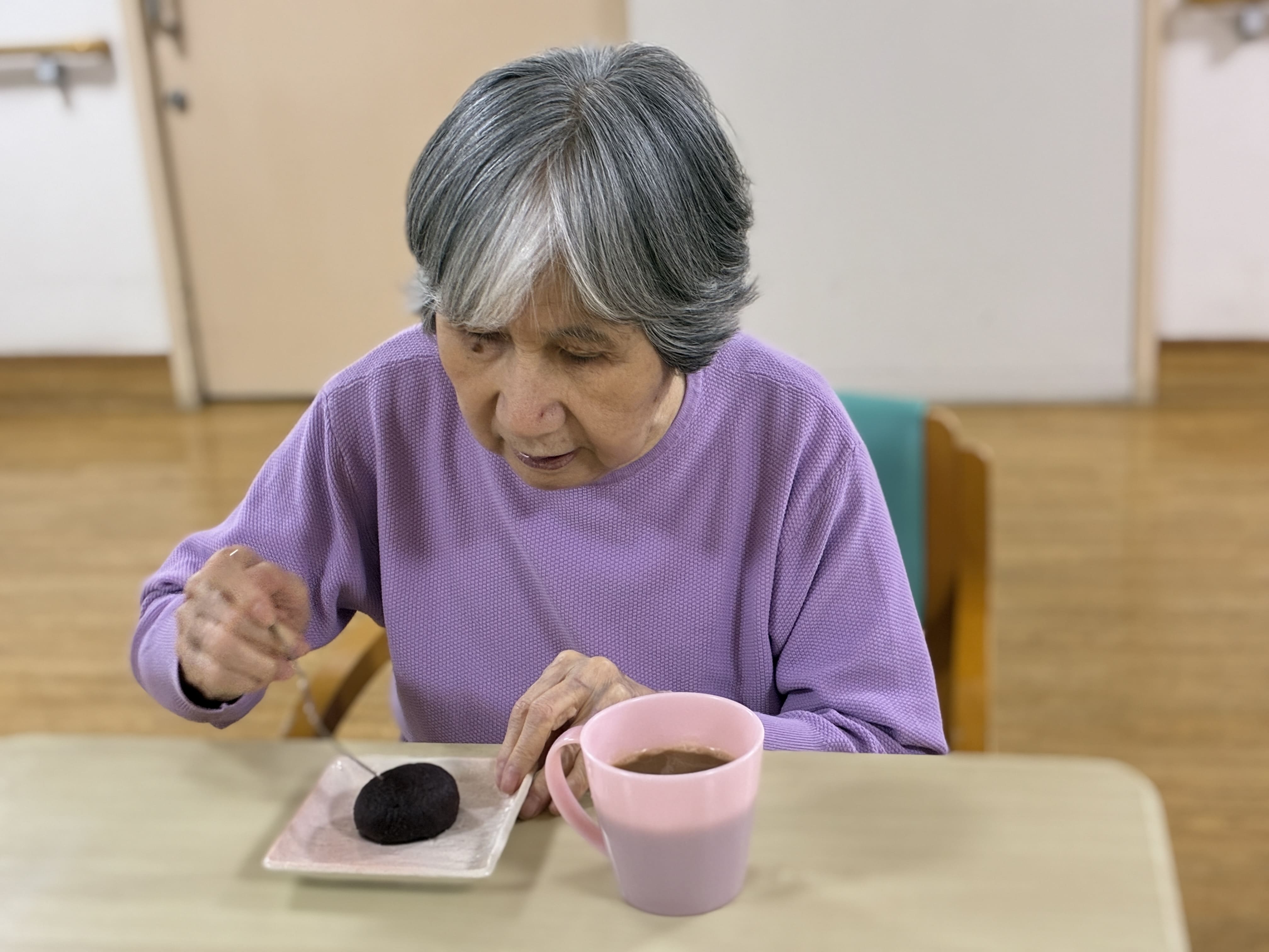 3月20日のおやつの日に、お彼岸ということで手作りのおはぎ(ぼたもち)を提供しました。